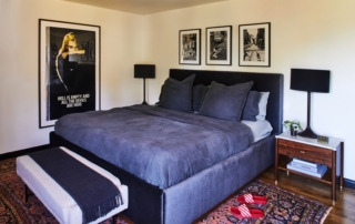 طراحی اسپانیایی استعماری در این خانه در المان های متنوعی قابل رویت است. سقف با الوار چوبی ، درب ورودی به شکل آرک ، طاق های گنبدی شکل و فرش های دستبافت بختیاری از جمله بارز ترین این المان های طراحی می باشد. این خانه دارای امکاناتی نظیر استخر آب گرم ، چهار اتاق خواب ، استودیوی خانگی و اتاق مهمان می باشد. البته جی ایزی یکی از اتاق های این خانه را به صورت کامل تبدیل به یک واکینگ کلوزت نموده است.